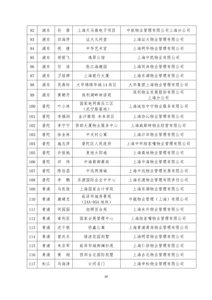 关于表彰2020年度上海市物业管理优秀项目经理、服务能手的通知